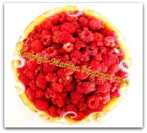 Теперь берём нашу малину и аккуратно высыпаем её горкой на тесто.